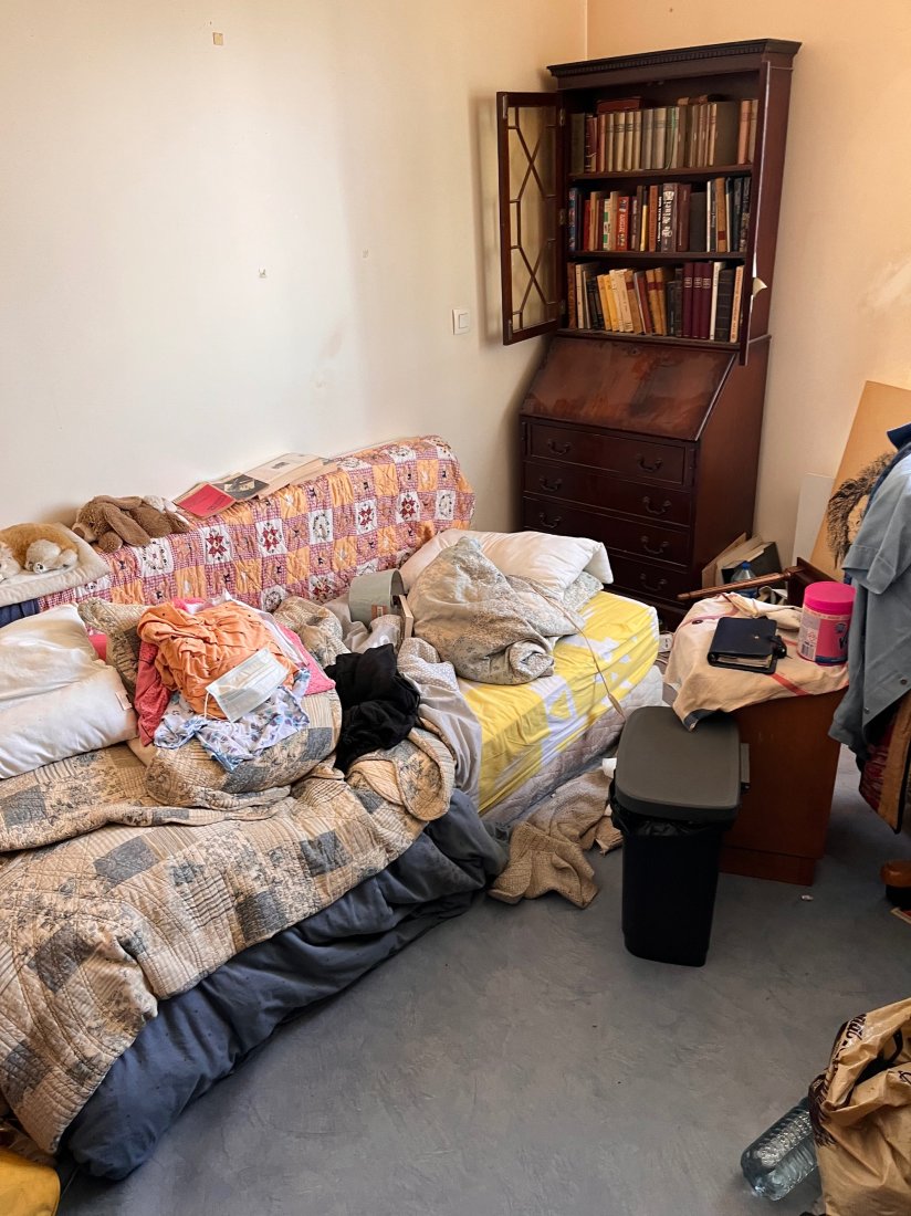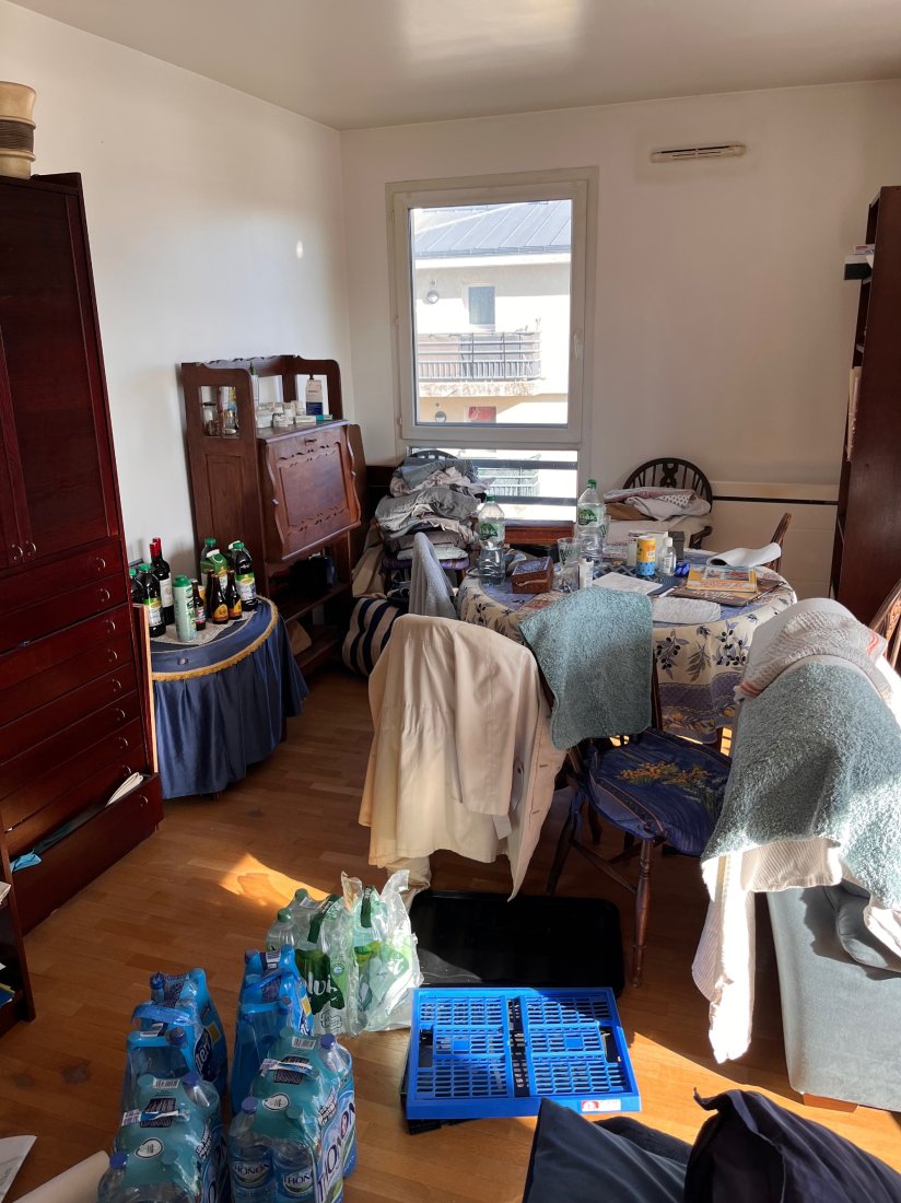 Photo illustrant l’équipe BGLA SERVICES en pleine intervention de débarras dans un appartement 4 pièces?: tri, enlèvement et nettoyage du mobilier et des encombrants, pour restituer un intérieur propre et dégagé.